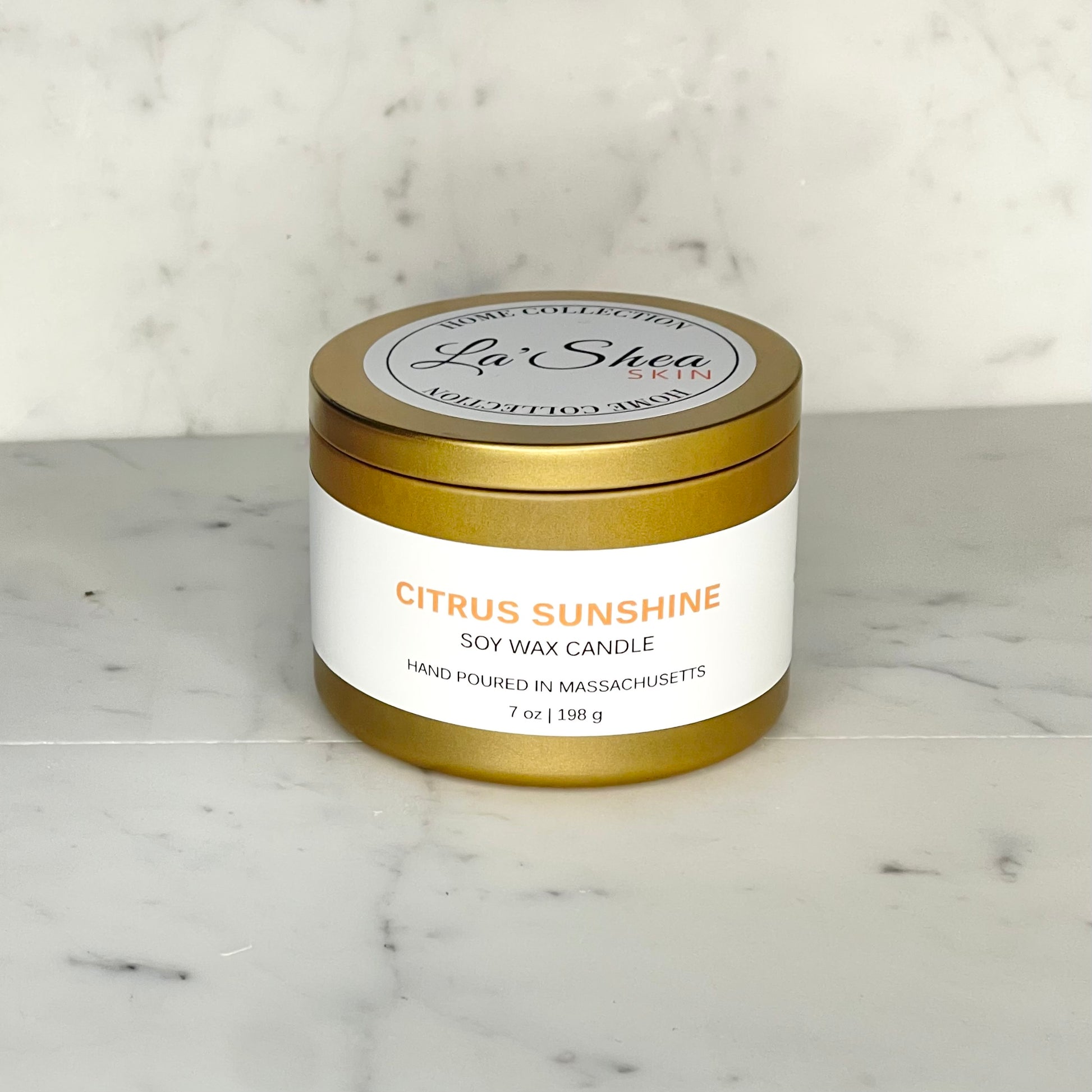 Delight in the sweet scent of our all-natural Citrus Sunshine soy candle. A radiant and joyful aroma of citrus fruits rounded out with the warmth of vanilla and musk.