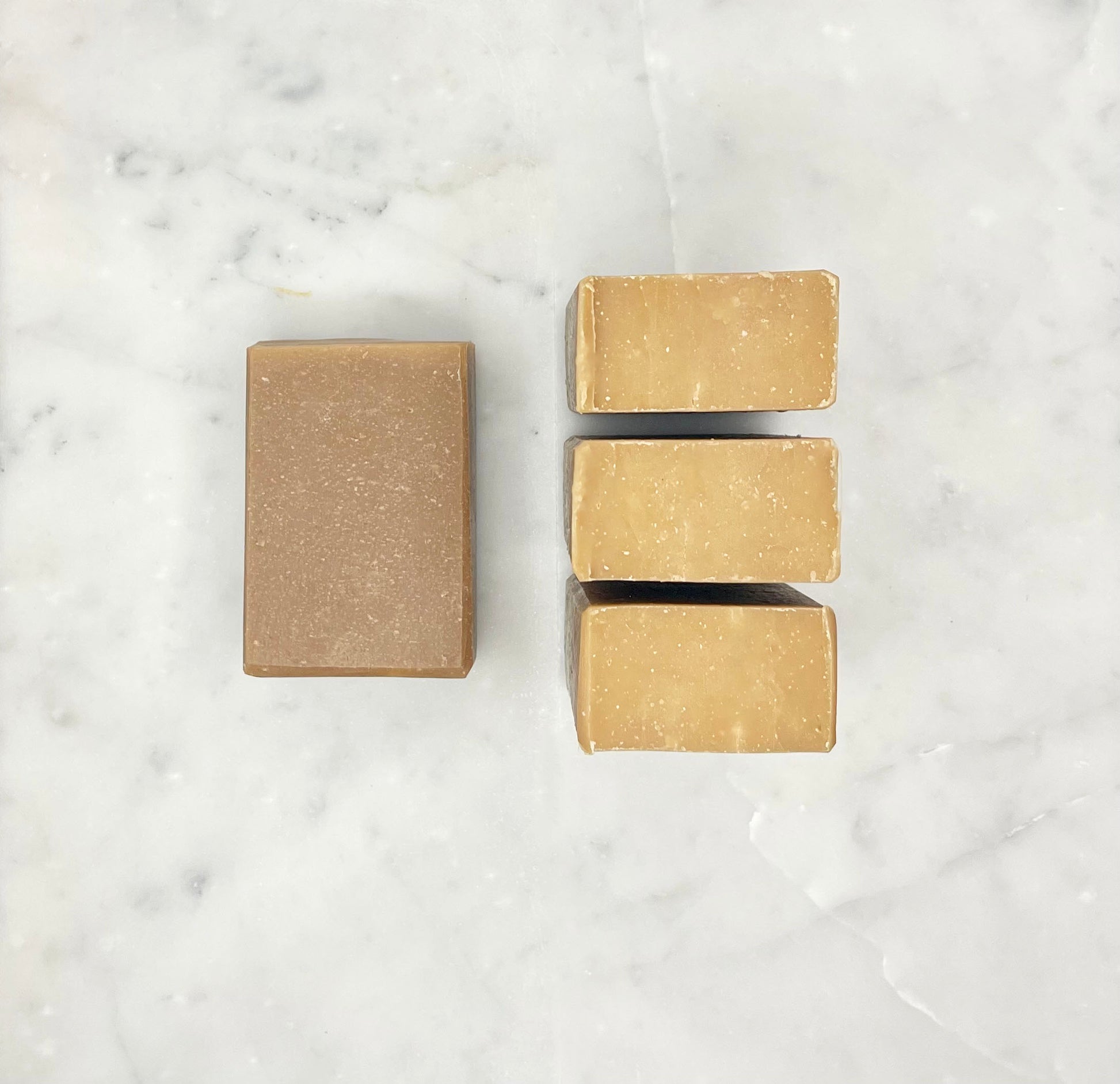 Our Triple Butter + Oats Artisan Soap is a lovely blend of oat and coconut milk, honey, and three luxurious butters into a gentle creamy bar.