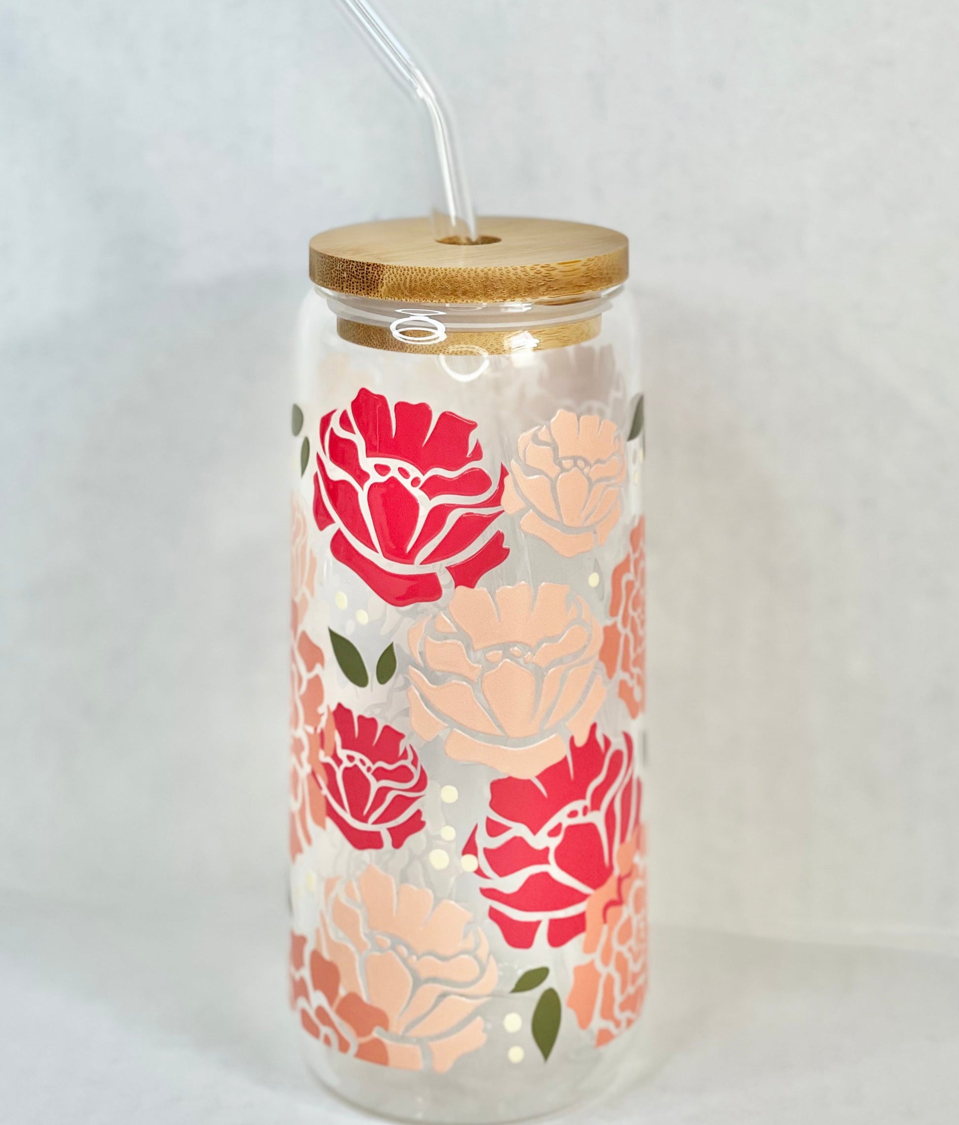 Quench your thirst and add style to your day with our 20 oz Peonies Glass Cup! This cute glass cup is the perfect way to enjoy your favorite beverage without sacrificing style. Includes bamboo lid and glass straw