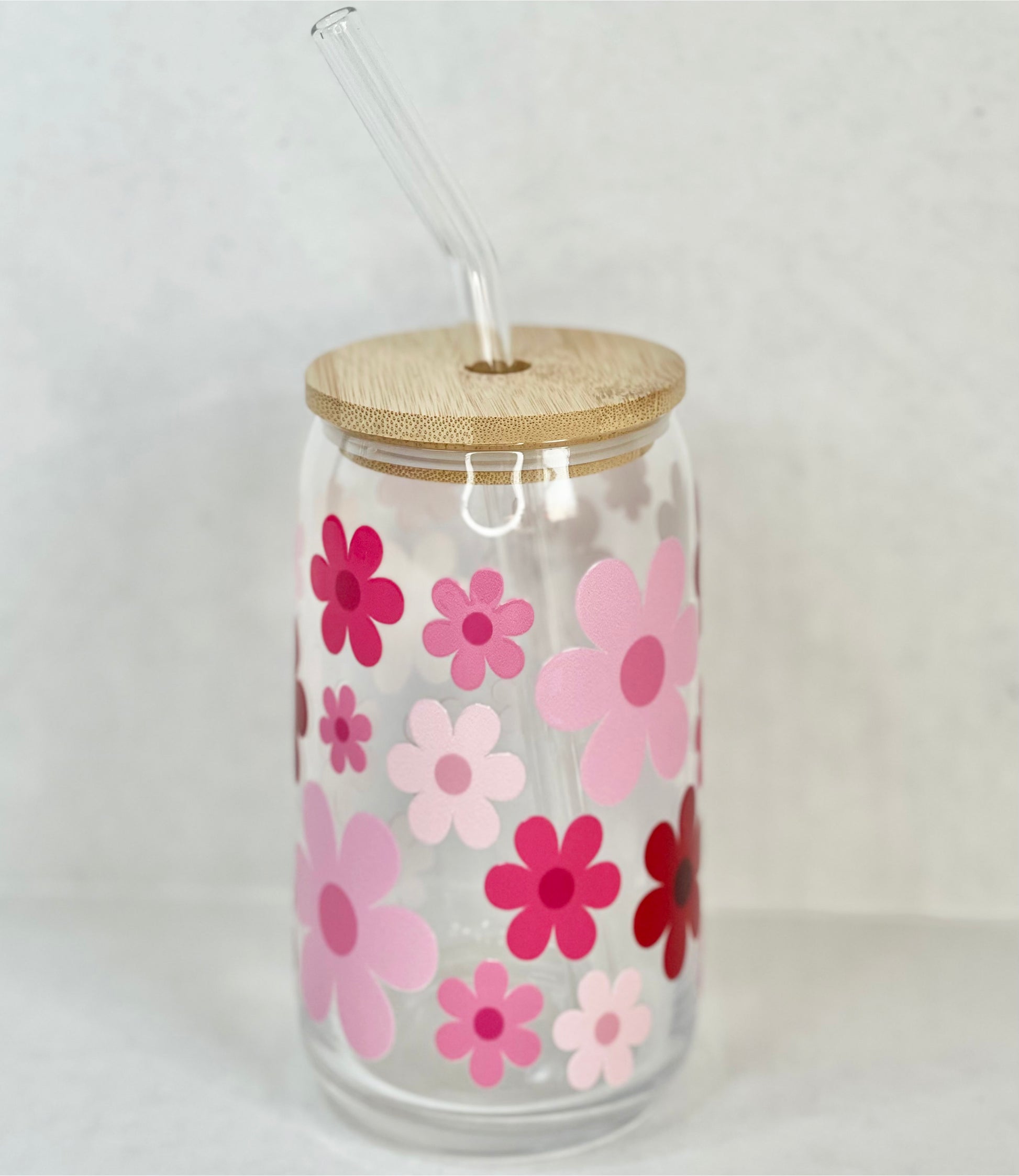 Quench your thirst and add style to your day with our 16 oz Pink Daisies Glass Cup! This cute glass cup is the perfect way to enjoy your favorite beverage without sacrificing style. Includes bamboo lid and glass straw.